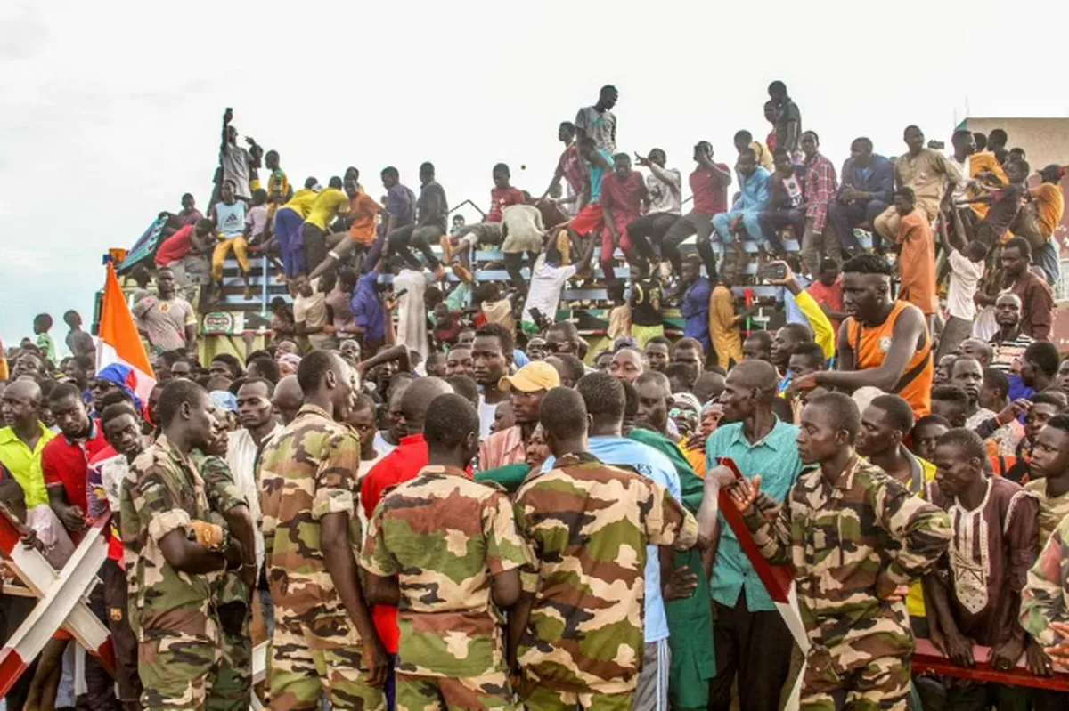 درحالی‌که جامعه اقتصادی کشور‌های غرب آفریقا (اِکُواس، ECOWAS) در آماده‌باش به سر می‌برد تا به زعم خود، از راه مداخله نظامی، نظم قانون‌محور را به نیجر بازگرداند، مردم این کشور آفریقایی به نشانه مخالفت با تداوم استعمار غرب، تجمع خود را از مقابل یکی از پایگاه‌های نظامی فرانسه آغاز کردند و رفته رفته به سایر خیابان‌های شهر نیامی سرازیر شدند.
