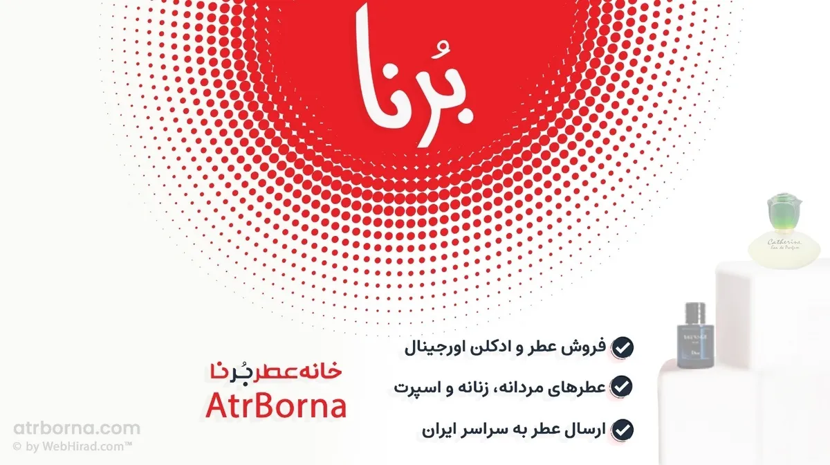 هم اینک برای بازدید از عطر برنا به نشانی www.atrborna.com بروید و عطر دلخواه خود را سپارش دهید تا در هرجای ایران عزیزمان که هستید، برای شما بستهبندی، آمادهسازی و فرستاده شود.