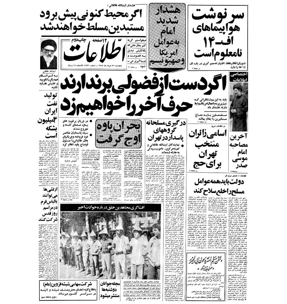 سخنگوی دولت از کشف توطئه عوامل ضد انقلاب در به آشوب کشاندن تهران خبر داد. صادق طباطبایی هدف توطئه گران را هرج و مرج و ایجاد آشوب در کشور دانست. وی افزود: پس از کردستان، خوزستان و ترکمن صحرا توطئه گران به سراغ تهران آمده اند. سخنگوی دولت هرج و مرج را راهی برای به دست آوردن اهداف توطئه گران برشمرد و قول داد به زودی جزییات این توطئه را فاش میکند.