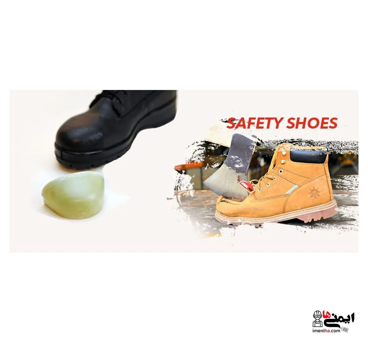 کفش ها و پوتین های ایمنی دارای سه جزء اصلی رویه، سرپنجه و زیره می باشند. اصلی ترین قسمت کفش ایمنی رویه کفش است که معمولاً از جنس چرم طبیعی تهیه می شود تا مقاومت بسیار بالایی داشته باشد و از فرو رفتن اجسام تیز و برنده به داخل و مجروح شدن پاها جلوگیری نماید. سرپنجه کفش ایمنی هم معمولاً از جنس فولاد و یا کامپوزیت است. سرپنجه های کامپوزیتی در برابر ضربه مقاومت بالایی دارند و ضربه هایی تا 200 ژول را تحمل می کنند. زیره کفش ها و پوتین های ایمنی نیز باید در برابر خوردگی در اثر مواد اسیدی و شیمیایی مقاومت لازم را داشته باشند و ضد لغزش و سر خوردگی ساخته شوند.