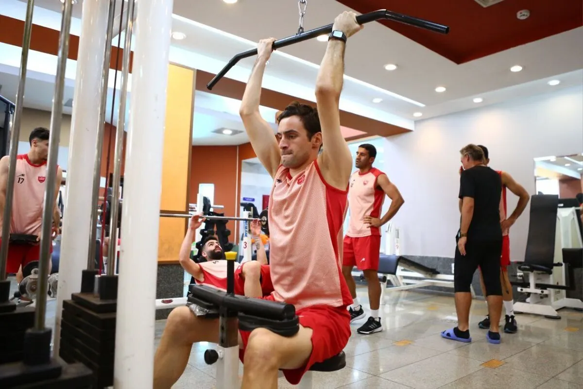 سرخپوشان امروز راهی هتل المپیک شدند. آنها ابتدا به سالن وزنه رفتند. گروهی از بازیکنان که در ترکیب اصلی نبودند. زمان بیشتری را در سالن طی کردند و به کار با وزنه پرداختند. دیگر نفرات هم برنامه کشش داشتند و پس از آن راهی استخر شدند.