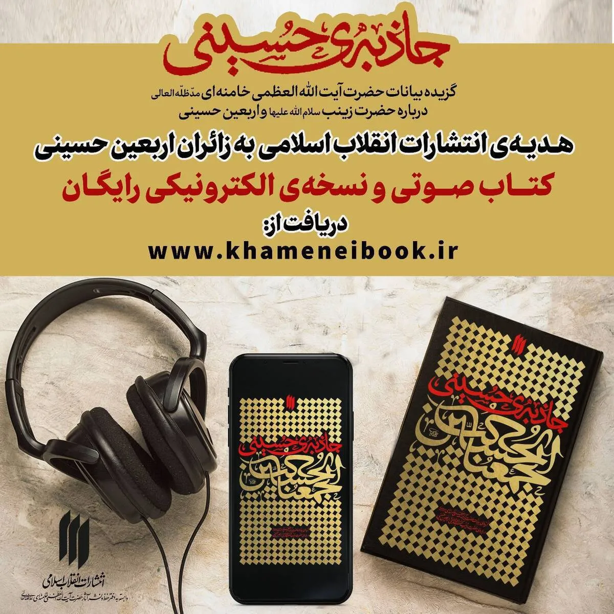 در آستانه اربعین حسینی، نسخه صوتی و الکترونیکی کتاب جاذبه حسینی به صورت رایگان در اختیار علاقهمندان قرار گرفته است و مخاطبان میتوانند با مراجعه به درگاه الکترونیکی انتشارات به نشانی www.khameneibook.ir کتاب صوتی و نسخه الکترونیکی این اثر را دریافت نمایند.