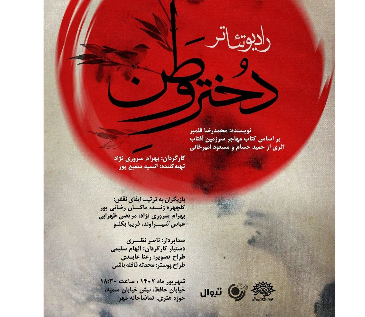 رادیو تئاتر «دختر وطن» به کارگردانی بهرام سروری نژاد در تماشاخانه مهر حوزه هنری اجرا میشود.