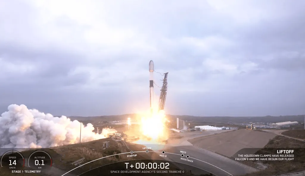این ماهوارهها در سومین تلاش اسپیسایکس برای پرتاب دومین مأموریت صورت فلکی (Tranche ۰) آژانس توسعه فضایی آمریکا (SDA) به مدار زمین پرتاب شدند.