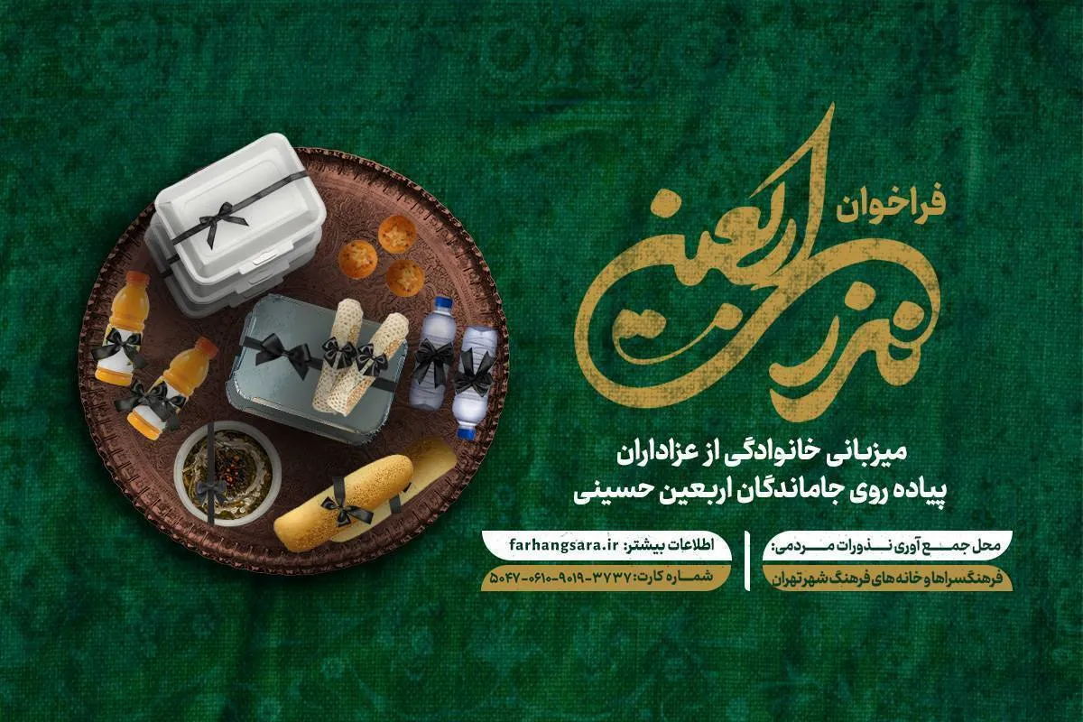 علاقهمندان جهت پیوستن به پویش «نذر اربعین» تا ۱۴ شهریور ماه به فرهنگسراها و یا خانههای فرهنگ شهر تهران مراجعه کنند و برای کسب اطلاعات بیشتر با شماره ۱۸۳۷ تماس گیرند.