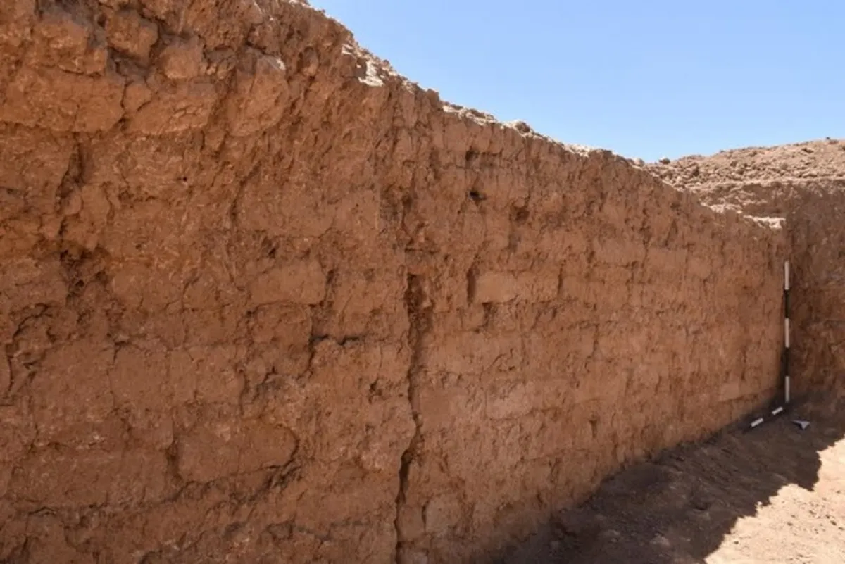کاوشها و بررسیهای فصلهای گذشته نشان داد که حصار این محوطه به برجهایی با پلان راستگوشه مجهز بوده و در میانه ضلع شمال غربی، دروازه اصلی قرار داشته است. تمرکز کاوشهای باستانشناسی در تپهای که در ناحیۀ جنوبی محوطه قرار داشت، منجر به کشف بقایای یک مجموعۀ معماری شد که با دیوارهای خشتی به ضخامت ۳ متر بنا شده بود.