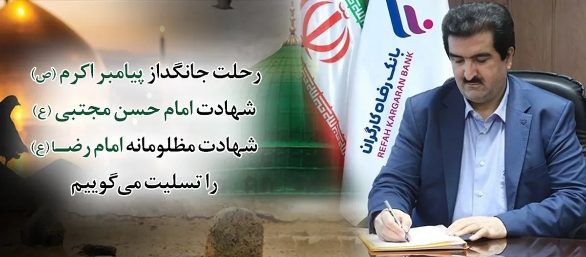پیام تسلیت مدیرعامل بانک رفاه کارگران به مناسبت ایام سوگواری ماه صفر