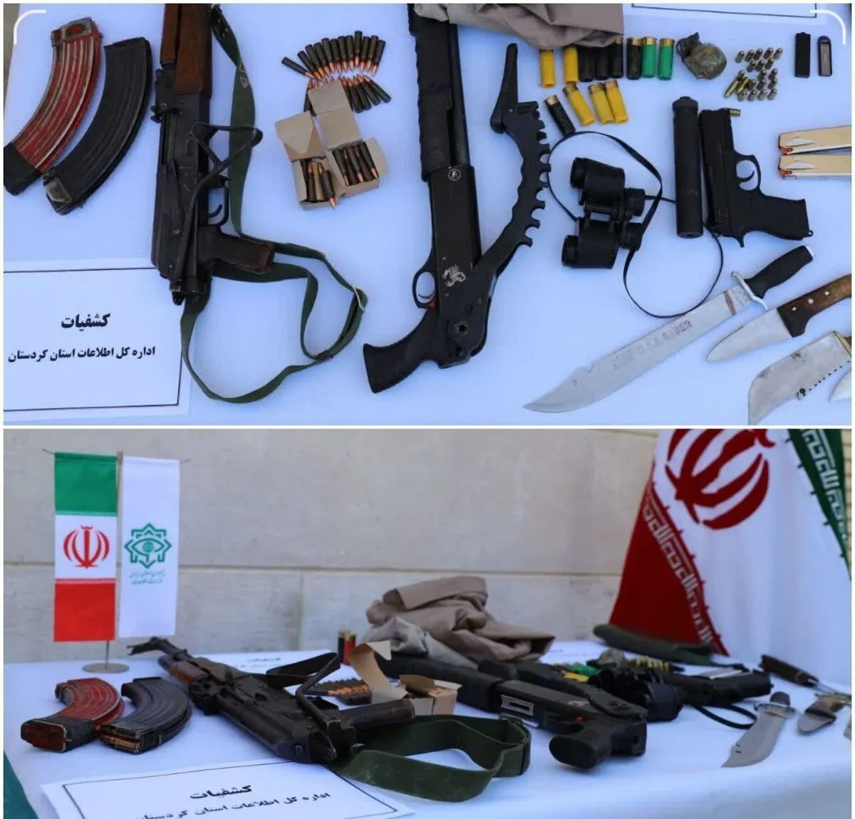 از این تیم چهارنفره سه قبضه اسلحه کلاش، کلت، سلاح شکاری ساچمه زنی، دو دست لباس نیرو‌های نظامی و تعدادی اسلحه سرد به دست آمده است.