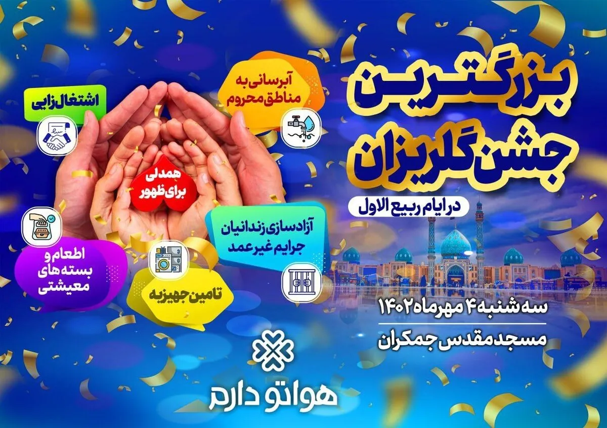 یکی از جلوههایی که در جامعه مهدوی بروز و ظهور دارد همیاری و دستگیری مومنین از هم است. در همین راستا مسجد مقدس جمکران با مشارکت آحاد مردم و مجموعههای خیریه و خدماترسان اجتماعی از ۹ ربیعالاول برابر با ۳ مهر ماه تا ۱۷ ربیعالاول برابر با ۱۱ مهرماه که با ولادت رسول اکرم (ص) همراه است جشن گلریزان «همدلی برای ظهور» را برگزار میکند. در کنار این گلریزان، پویش «هواتو دارم» هم بر پا و بهزودی درگاههای دریافت کمکهای مردمی اعلام خواهد شد.