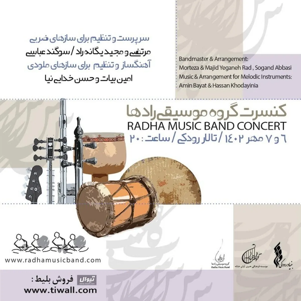گروه موسیقی رادها به سرپرستی مرتضی و مجید یگانه راد ششم و هفتم مهر ماه در تالار رودکی اجرا خواهند داشت.