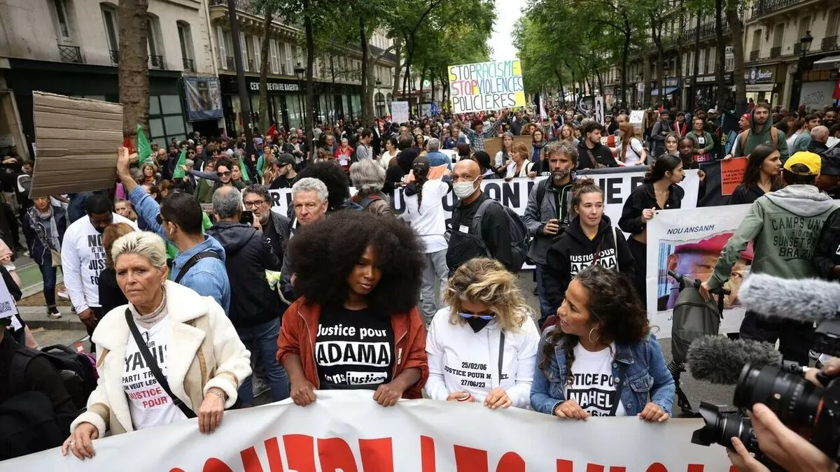 راهپیمایی چند هزار نفرِ پاریس، حدود ساعت ۱۵:۰۰ بعدازظهر به وقت پایتخت این کشور (۱۶:۳۰ به وقت تهران) از منطقه گَر دو نور (Gare du Nord) واقع در شمال شرقی پاریس به راه افتاد و در صف نخست گروهی از اعضای قربانیان خشونت پلیس حضور داشتند.