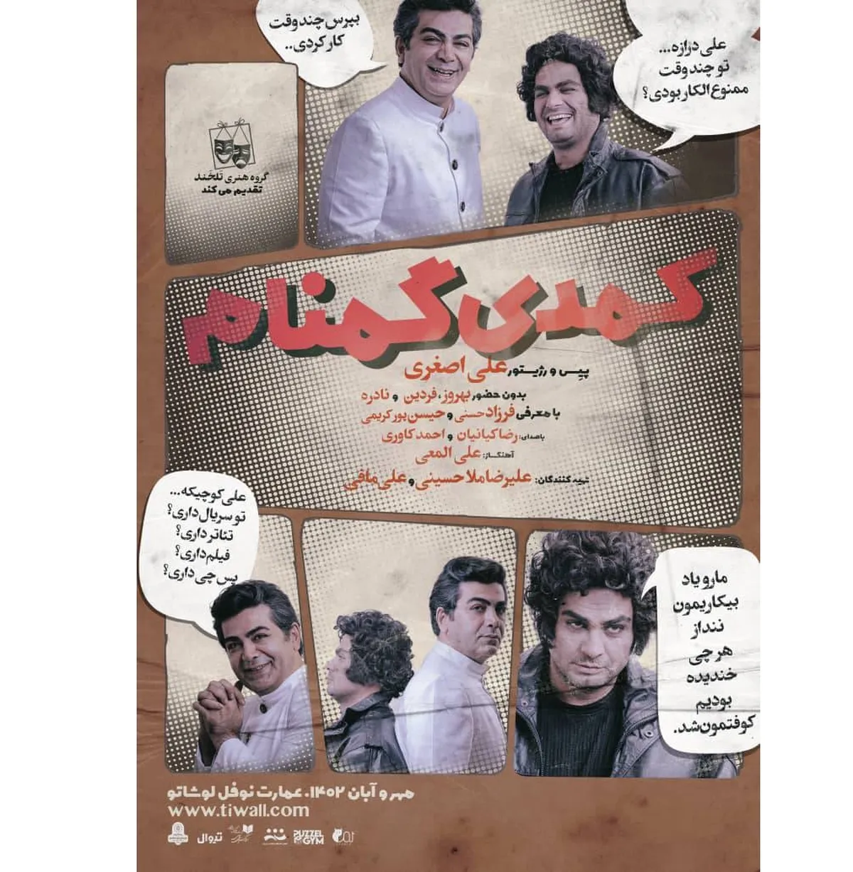 فرزادحسنی و حسین پورکریمی در نمایش «کمدی گمنام» بازی می کنند، همراه با صدای رضا کیانیان و احمد کاوری.