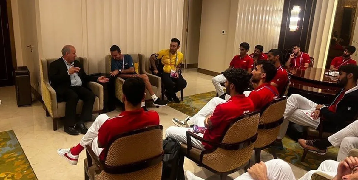 رئیس فدراسیون ضمن تاکید بر ضرورت تمرکز بازیکنان در ادامه رقابت‌ها خطاب به آنان گفت:دو درخواست از شما دارم. اول اینکه مراقب باشید بی جهت کارت نگیرید، چون در برخی صحنه‌ها در همین مسابقات دیدیم داوران به سرعت کارت دادند و این موضوع ممکن است تیم را دچار مشکلات جدی کند. نکته بعدی اینکه تیم حریف را دست کم نگیرید و با تمام توان به میدان بروید.
