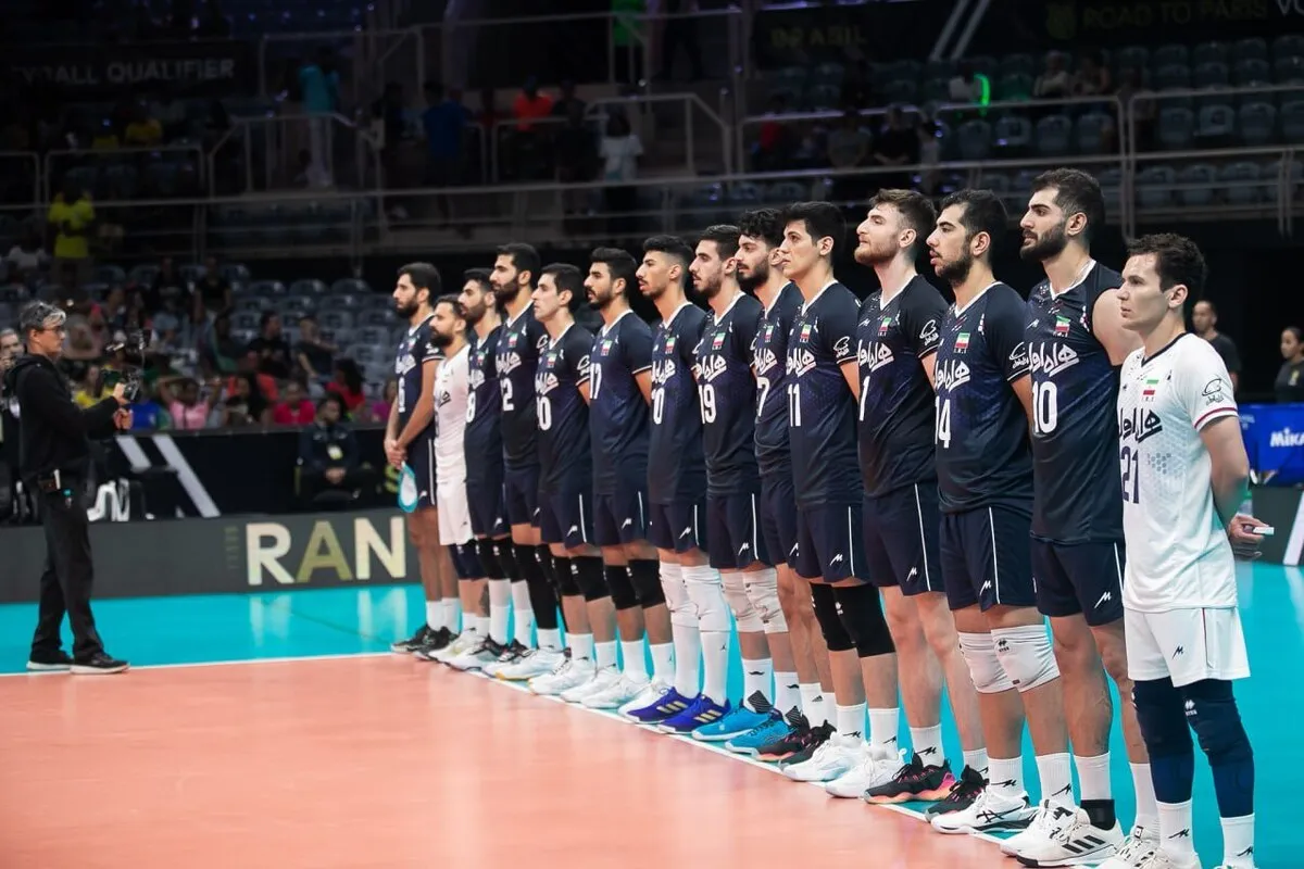 تیم ملی والیبال ایران این مسابقه را با ترکیب سید محمد موسوی، محمد طاهر وادی، امیرحسین اسفندیار، شهروز همایونفرمنش، محمد ولیزاده، امین اسماعیلنژاد و محمدرضا حضرتپور (لیبرو) آغاز کرد. مبین نصری، صابر کاظمی، پوریا حسینخانزاده و جواد حیدری دیگر بازیکنان ایران در این مسابقه بودند که با نظر بهروز عطایی به میدان رفتند.