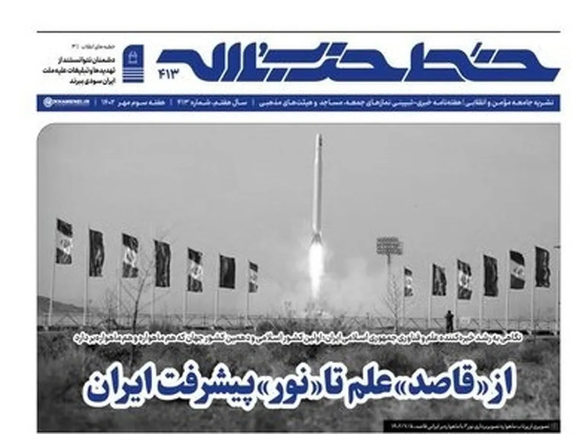 چهارصد و سیزدهمین شماره هفته‌نامه‌ خط‌حزب‌الله، با عنوان «از «قاصد»‌ علم تا «نور»‌ پیشرفت‌ ایران»‌ منتشر شد.