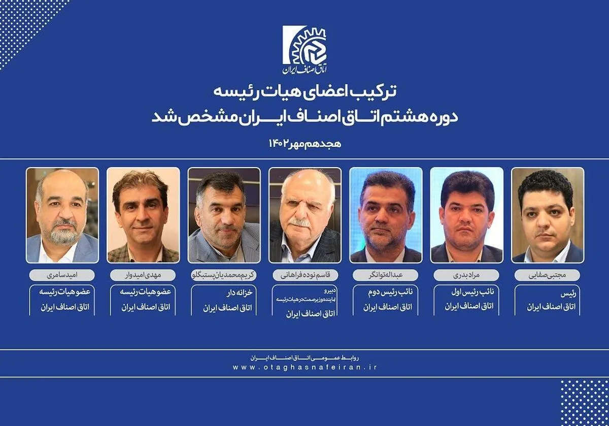 بدین ترتیب، ترکیب جدید اعضای هیئت رئیسه اتاق اصناف ایران به شرح ذیل تعیین شد.