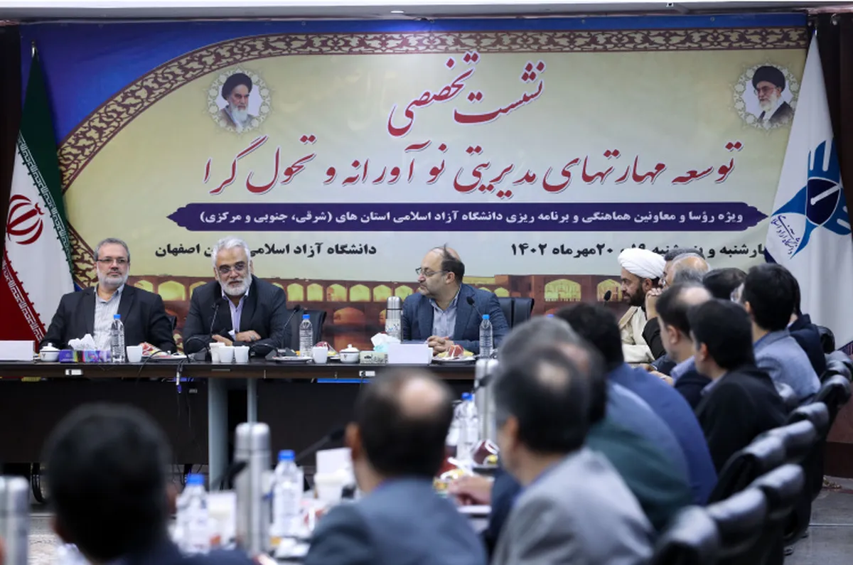 نشست تخصصی «توسعه مهارت‌های مدیریتی نوآورانه و تحول‌گرا» به ریاست دکتر محمدمهدی طهرانچی رئیس دانشگاه آزاد اسلامی آغاز به کار کرد.