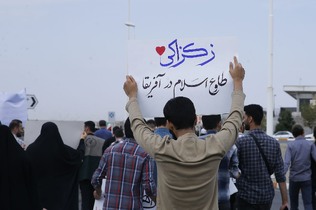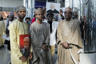 مراسم استقبال از شیخ ابراهیم زکزاکی رهبر شیعیان نیجریه در سفر به ایران با حضور جمعی از مردم در فرودگاه امام خمینی (ره) برگزار شد.
