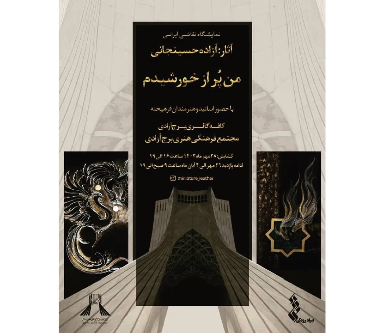 نمایشگاه نقاشی ایرانی «من پُر از خورشیدم» با آثار آزاده حسینجانی روز جمعه، ۲۸ مهر در کافه گالری برج آزادی افتتاح میشود.
