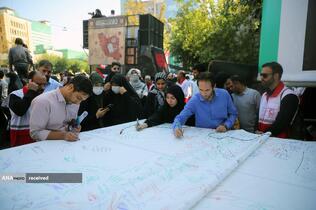 گردهمایی بزرگ جامعه پزشکی در حمایت از مردم مظلوم و بی دفاع غزه با حضور دکتر بهرام عین اللهی وزیر بهداشت، درمان و آموزش پزشکی کشورمان در میدان فلسطین تهران برگزار شد.