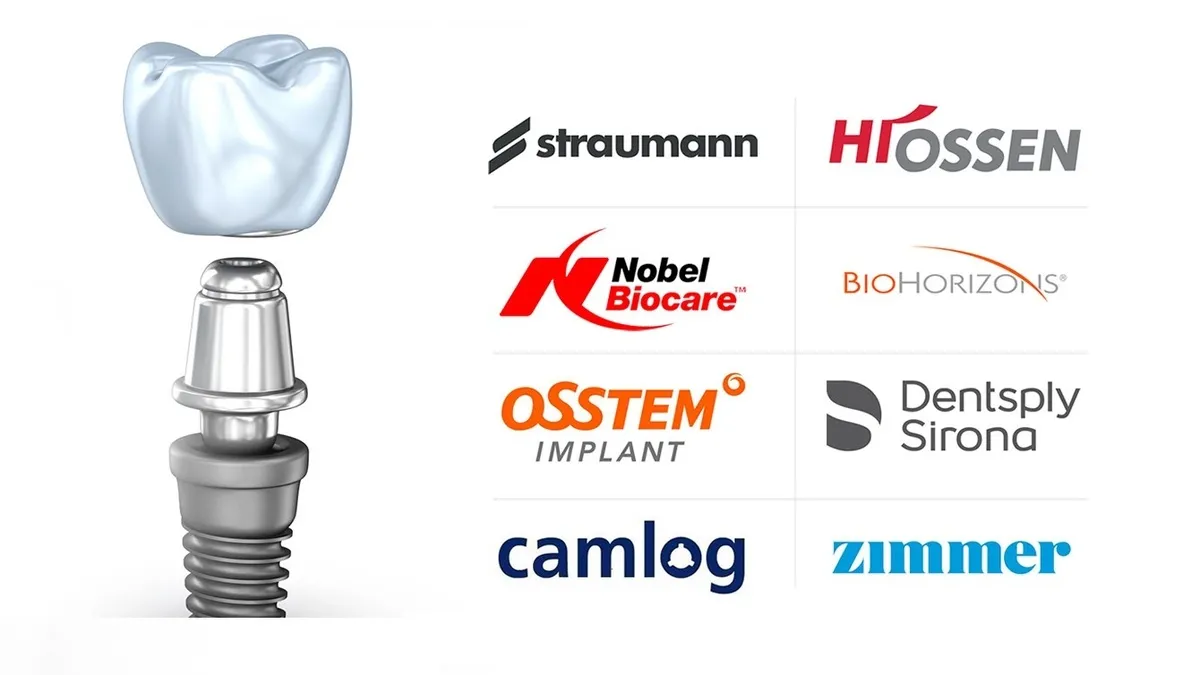 نمونهای از انواع مارک ایمپلنت دندانی، شامل گزینههای زیر است.