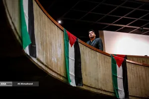 مراسم گردهمایی هنرمندان در حمایت از مردم مظلوم فلسطین در موزه هنرهای معاصر تهران برگزار شد.