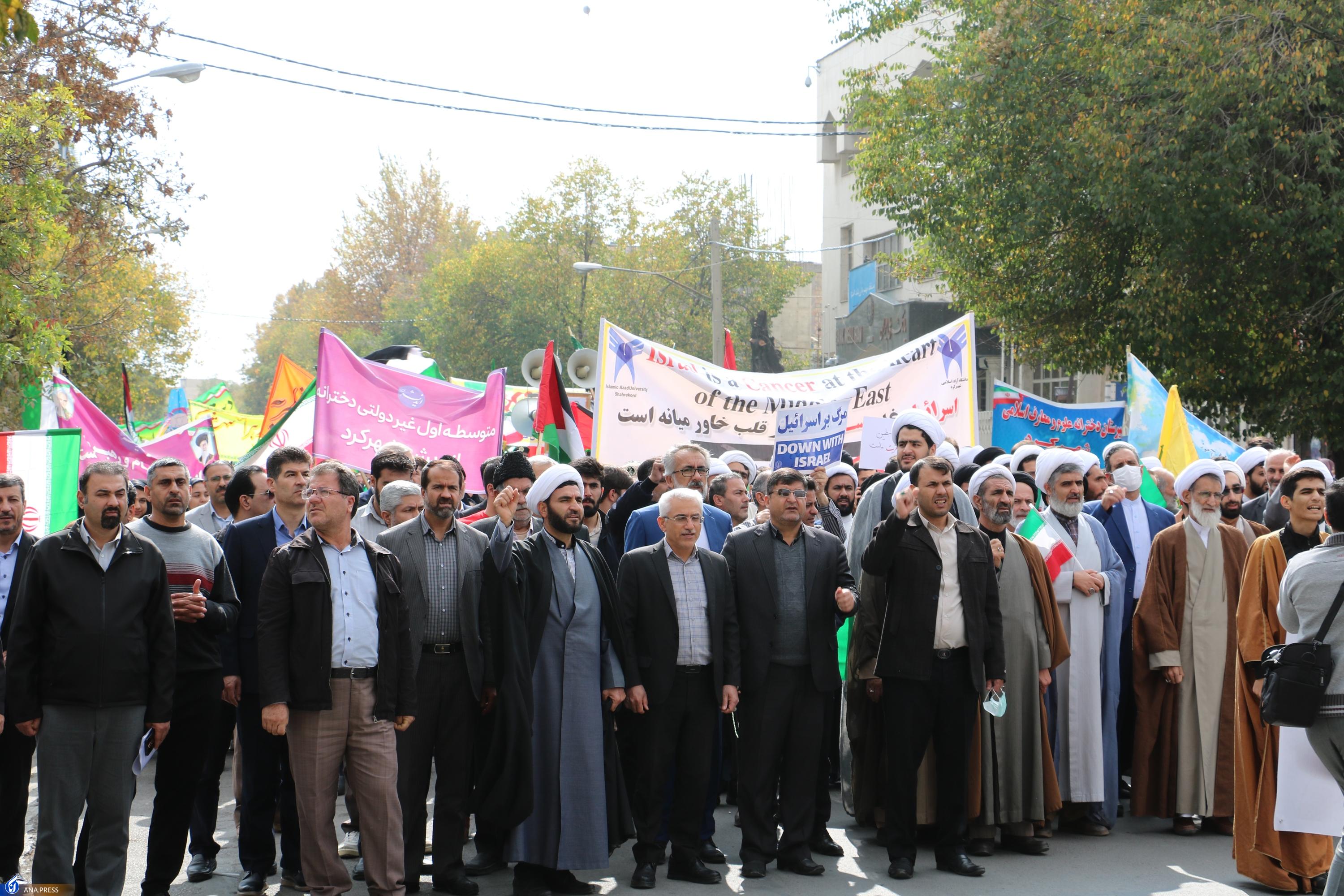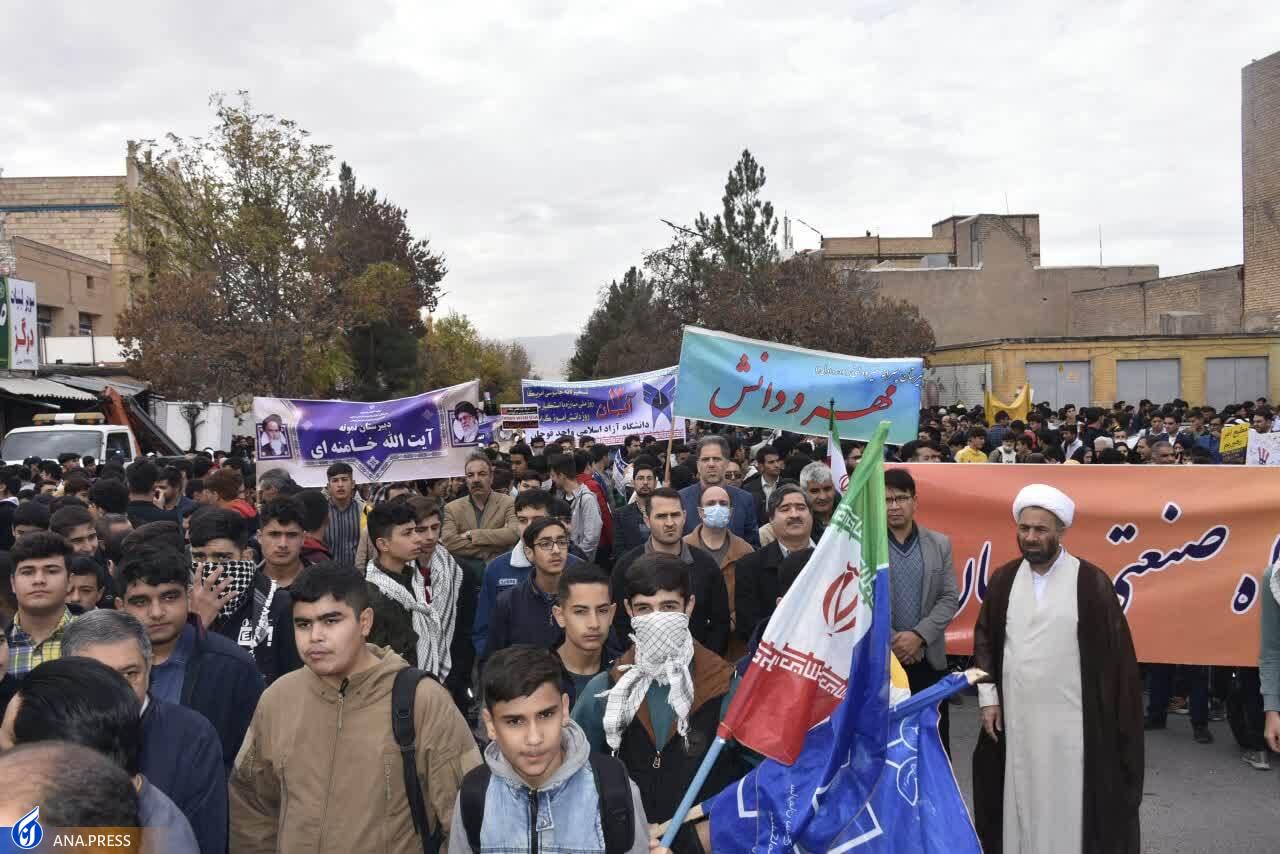 به گزارش خبرنگار خبرگزاری علم و فناوری آنا، مراسم راهپیمایی یوم الله ۱۳ آبان امسال در سراسر کشور با شعار «نظم نو جهانی با نسل آرمانی» با حضور اقشار مردم ازجمله دانشگاهیان در شرایطی برگزار شد که جهان در تب و تاب و شاهد جنایات رژیم کودک‌کش اسرائیل به سرکردگی آمریکا در فلسطین و کشتار مردم مظلوم غزه است.