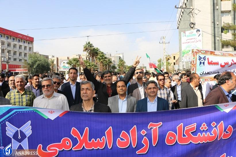 هیئت رئیسه، کارمندان و دانشجویان دانشگاه آزاد اسلامی با همراهی اقشار جامعه ازجمله دانش‌آموزان و دانشجویان در راهپیمایی ۱۳ آبان شرکت کردند.
