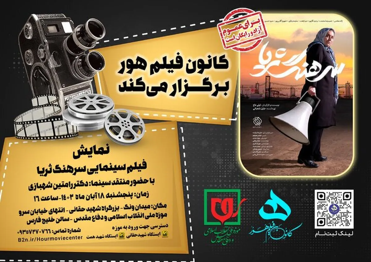 دومین جلسه اکران و نقد فیلم روز پنجشنبه ۱۸ آبان ماه ۱۴۰۲ ساعت ۱۶ در کانون فیلم هور به نشانی میدان ونک، بزرگراه شهید حقانی، خیابان سرو، ضلع جنوبی ایستگاه مترو شهید حقانی، موزه ملی انقلاب اسلامی و دفاع مقدس، سالن همایش های بین المللی خلیج فارس به نقد و بررسی فیلم «سرهنگ ثریا» به کارگردانی لیلی عاج با حضور رامتین شهبازی نویسنده و منتقد سینما اختصاص یافته است که حضور برای عموم علاقهمندان آزاد و رایگان است.