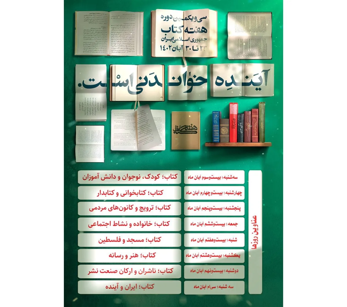 روزهای هفته کتاب نامدار شدند/ بستهای برای خواندن آینده
