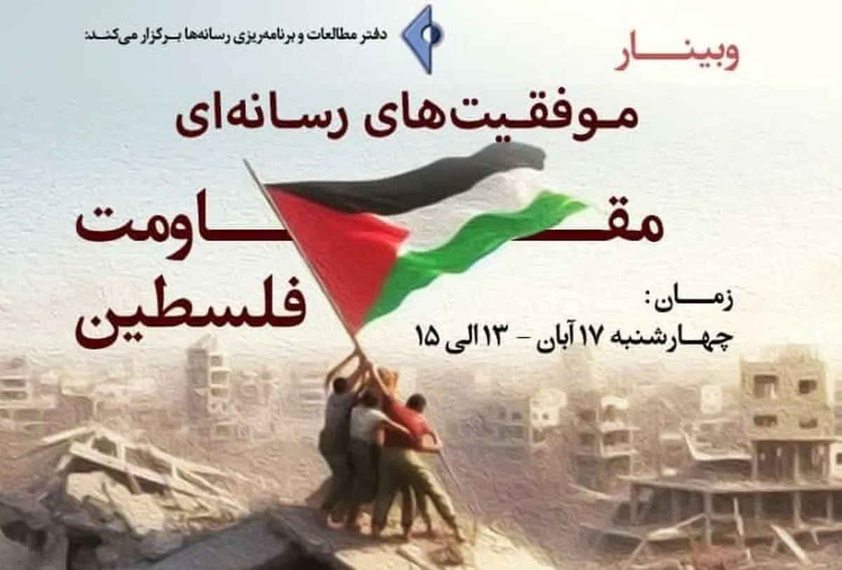 دفتر مطالعات و برنامهریزی رسانهها وبینار «موفقیتهای رسانهای مقاومت فلسطین» را برگزار میکند.
