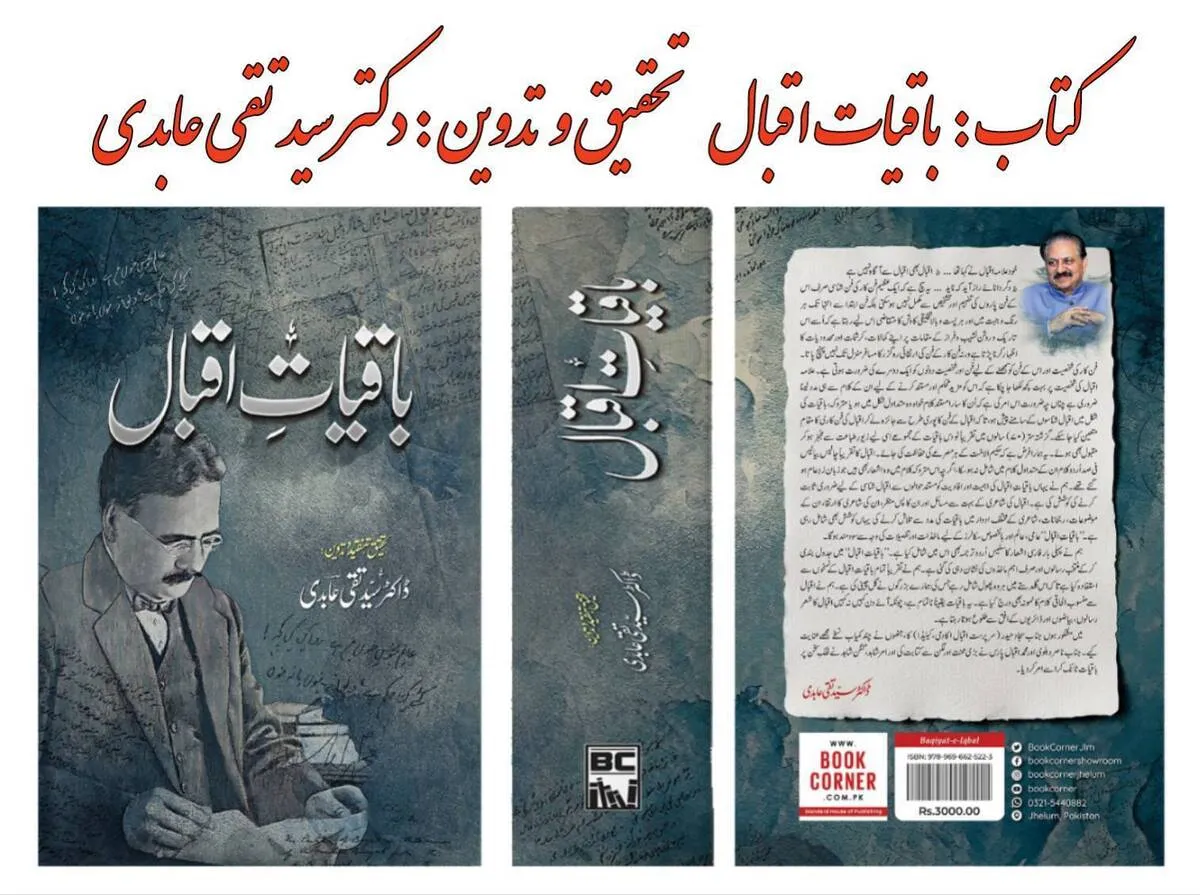 سید تقی عابدی نویسنده و پژوهشگر ادبی از کانادا، که تحقیق و تدوین کتاب «باقیات اقبال» به کوشش وی به سرانجام رسیده است بیان داشت: بنده بسیار خوشحال هستم که در این ویژه برنامه که به مناسبت بزرگداشت علامهی اقبال لاهوری است ما دربارهی کتاب «باقیات اقبال» صحبت و از این کتاب در صد و چهل و ششمین سالروز ولادت اقبال رونمایی میکنیم. کتاب «باقیات اقبال» شامل آن دسته از اشعار علامه اقبال است که در کلام متداول و اشعار معمول او در بین مردم دیده نشده است. میتوان گفت حدود ۴۲ درصد اشعار اردو و فارسی اقبال تاکنون در به رشته تحریر در نیامده بود. مجموعهای شامل ۹۲ منظومه و ۶۳ غزل و قطعات و رباعیات و ... که علامه اقبال به علل مختلف چاپ و منتشر نکرده بود.