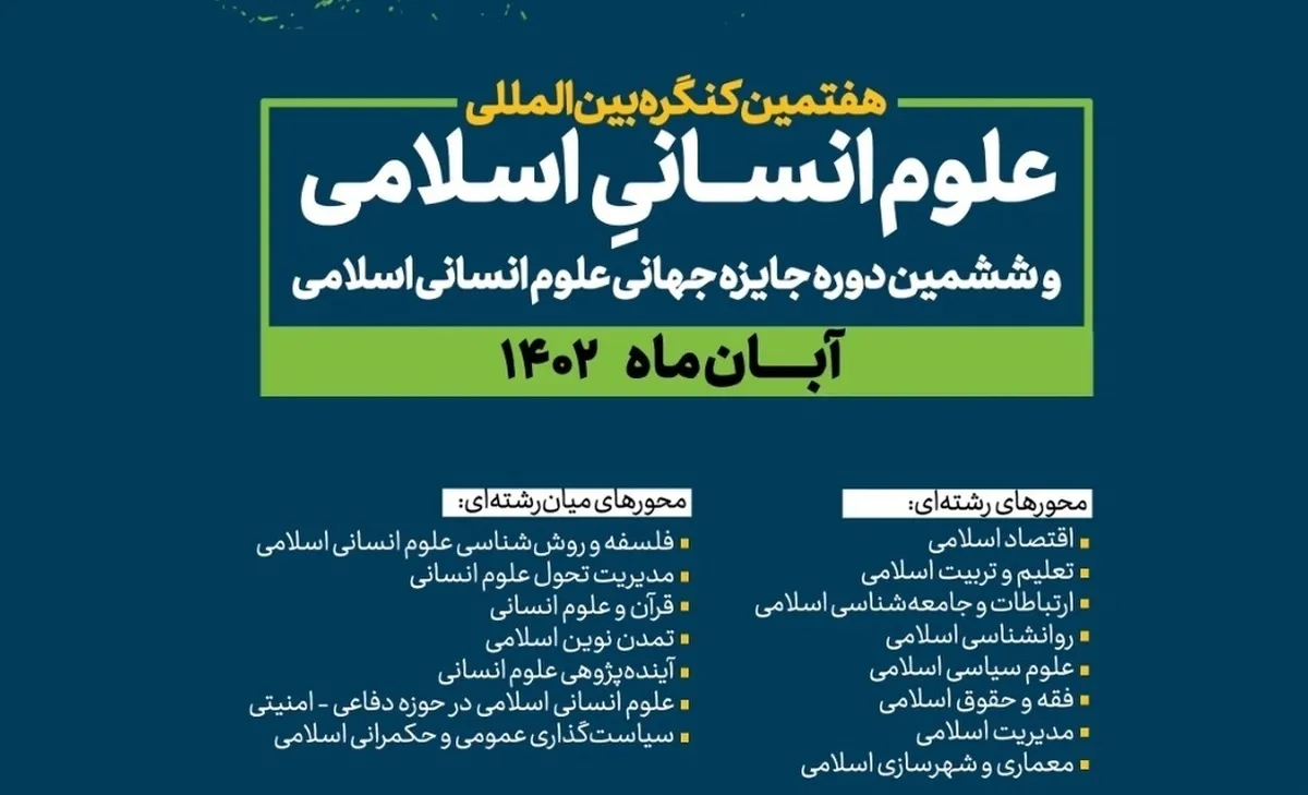 هفتمین کنگره بین‌المللی علوم انسانی اسلامی و ششمین جایزه جهانی علوم انسانی اسلامی روز دوشنبه ۲۲ آبان ماه از ساعت ۸ صبح در فرهنگستان علوم جمهوری اسلامی به نشانی: بزرگراه شهید حقانی، خروجی فرهنگستان‌های جمهوری اسلامی ایران و کتابخانه ملی، فرهنگستان علوم جمهوری اسلامی ایران، تالار استاد رضا داوری اردکانی برگزار می‌گردد.