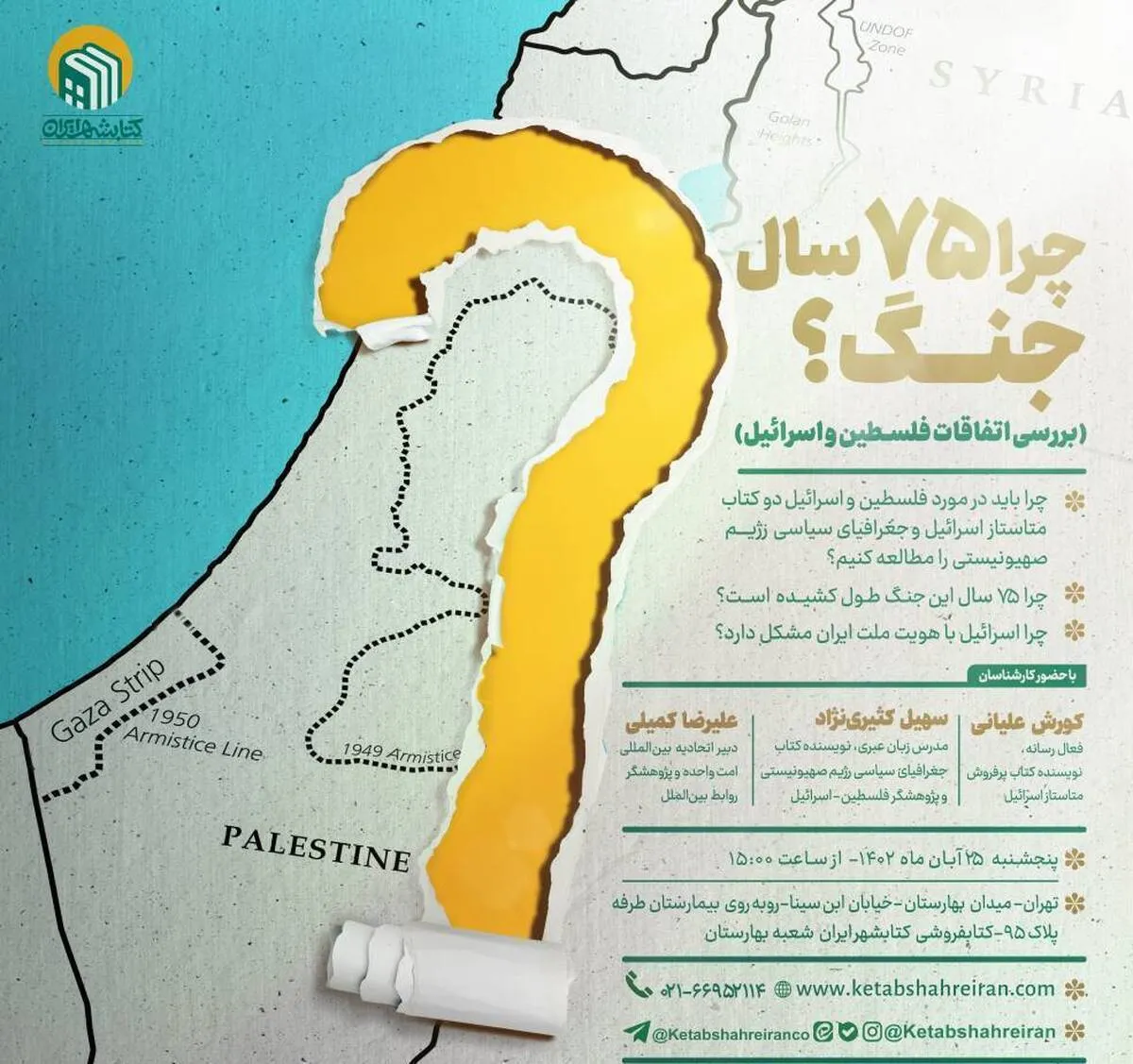 در رویداد «چرا ۷۵سال جنگ؟» دو کتاب «جغرافیای سیاسی رژیم صهیونیستی» و «متاستاز اسرائیل» معرفی و بررسی خواهد شد.