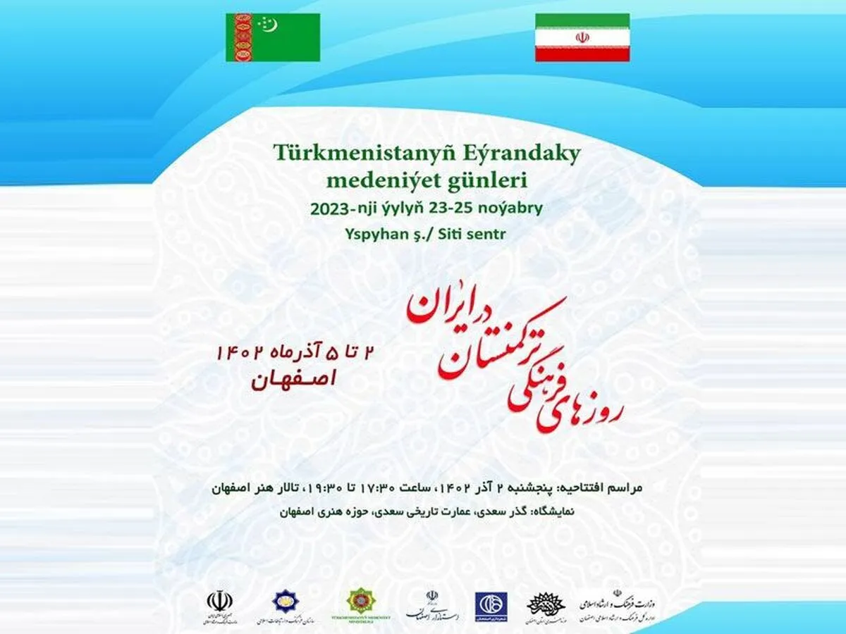 هفته فرهنگی ترکمنستان دوم آذر ماه، ساعت ۱۷:۳۰ در تالار هنر اصفهان، با حضور وزیر فرهنگ و ارشاد اسلامی، استاندار اصفهان و وزیر فرهنگ ترکمنستان افتتاح می شود.