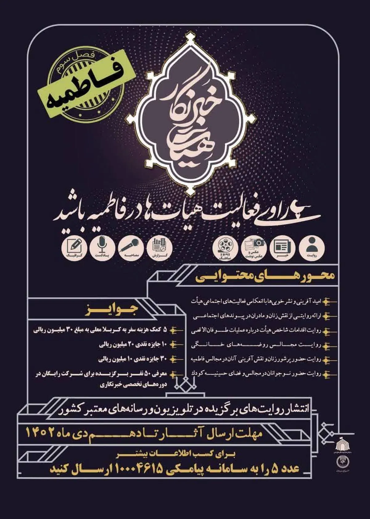 راویان برتر هیئتها در فاطمیه از کمک هزینه سفر عتبات و هدایای نقدی برخوردار خواهند شد. روایتهای برگزیده این طرح بناست در تلویزیون و رسانههای معتبر کشور بازنشر داده شود.