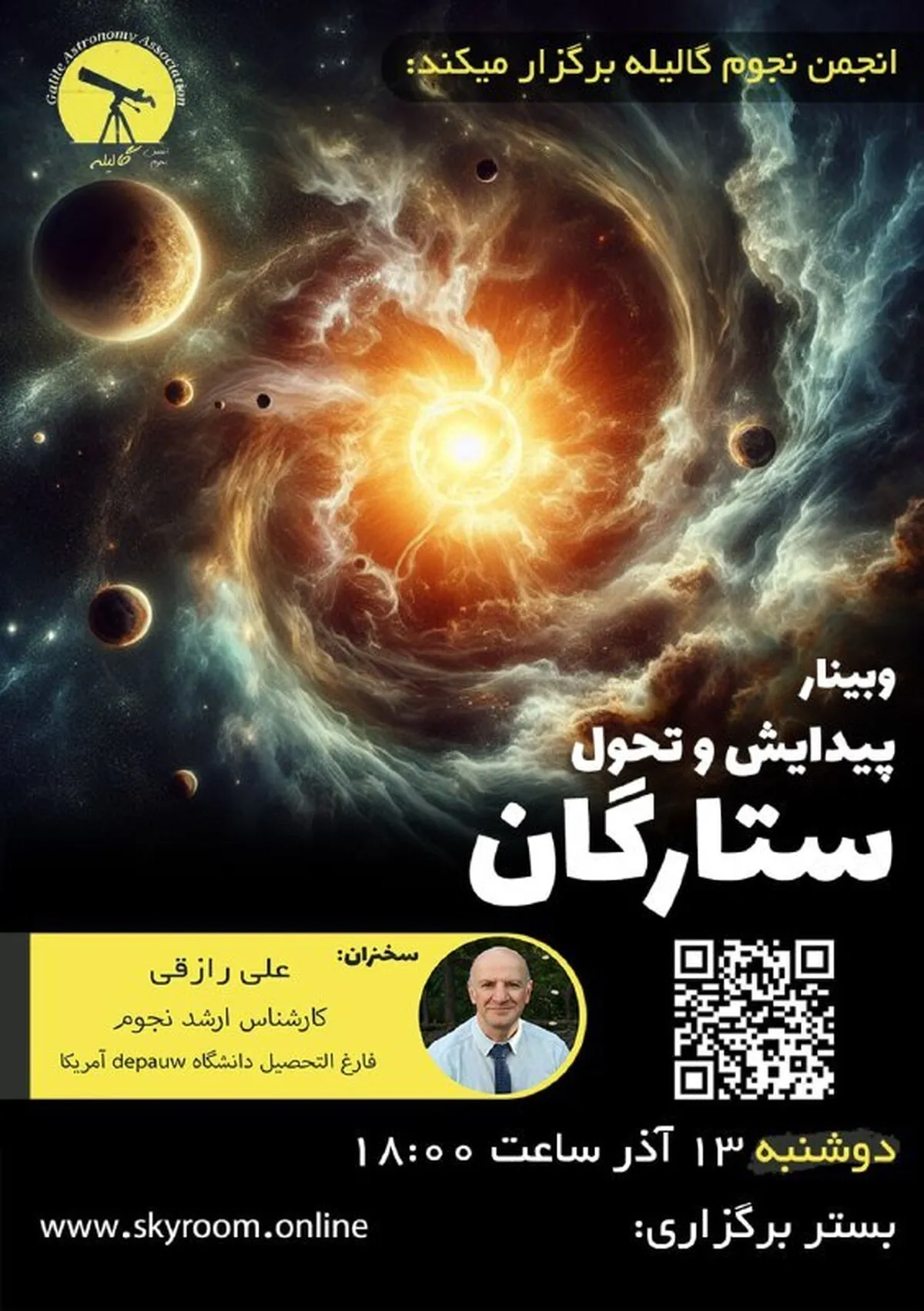 وبینار رایگان تحول و تکامل ستارگان از پیدایش تا مرگ آنها توسط انجمن نجوم گالیله برگزار میشود.