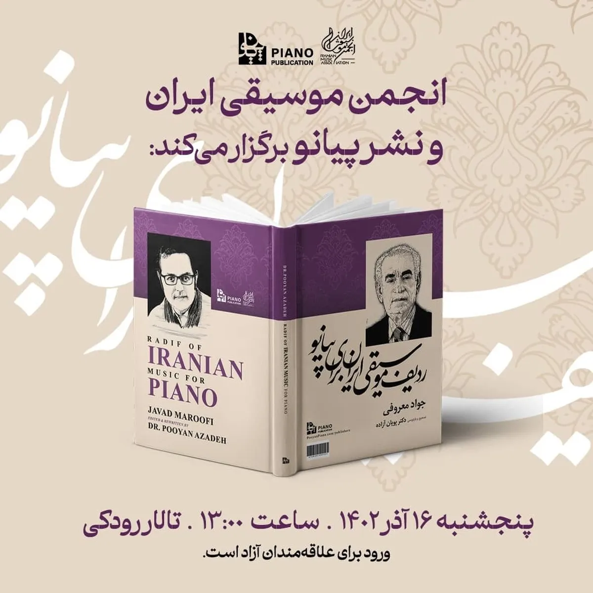 آئین رونمایی از «ردیف موسیقی ایران برای پیانو» پنجشنبه ۱۶ آذرماه از ساعت ۱۳ در تالار رودکی اجرا خواهد شد و ورود برای عموم علاقهمندان آزاد است.