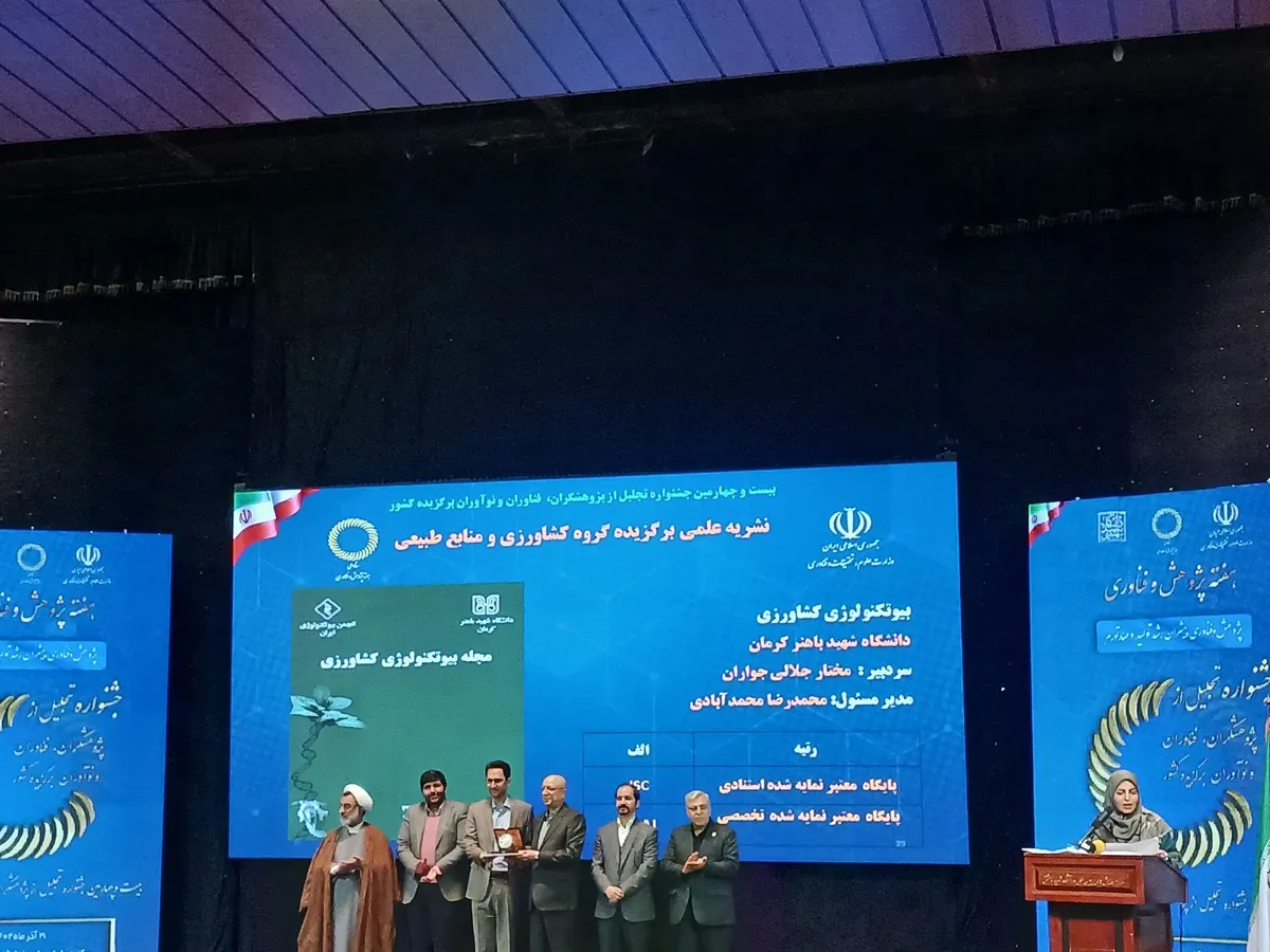 مریم گل آبادی از دانشگاه آزاد با طرح "اصلاح و تولید بذر ارقام هیبرید صیفی جات مهم گاخانه ای" بانوی فناور برگزیده معرفی و تجلیل شد.