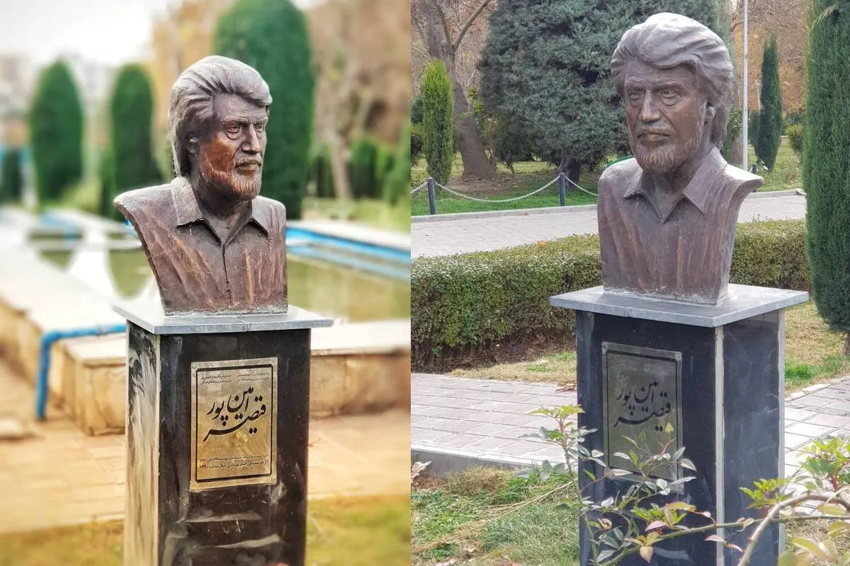 سردیس برنزی قیصر امین‌پور مرمت شد