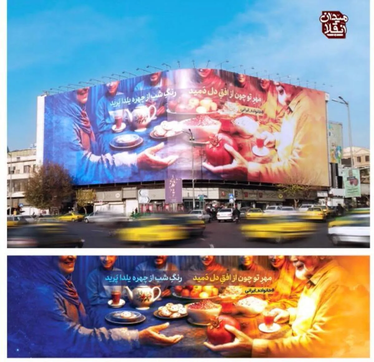 به گزارش گروه فرهنگ و جامعه خبرگزاری علم و فناوری آنا، همزمان با فرارسیدن شب یلدا، جدیدترین دیوارنگاره میدان انقلاب اسلامی با طرحی برگرفته از آداب و رسوم بلندترين شب سال و دورهمی خانواده ایرانی صبح امروز ۲۹ آذر ماه اکران شد.