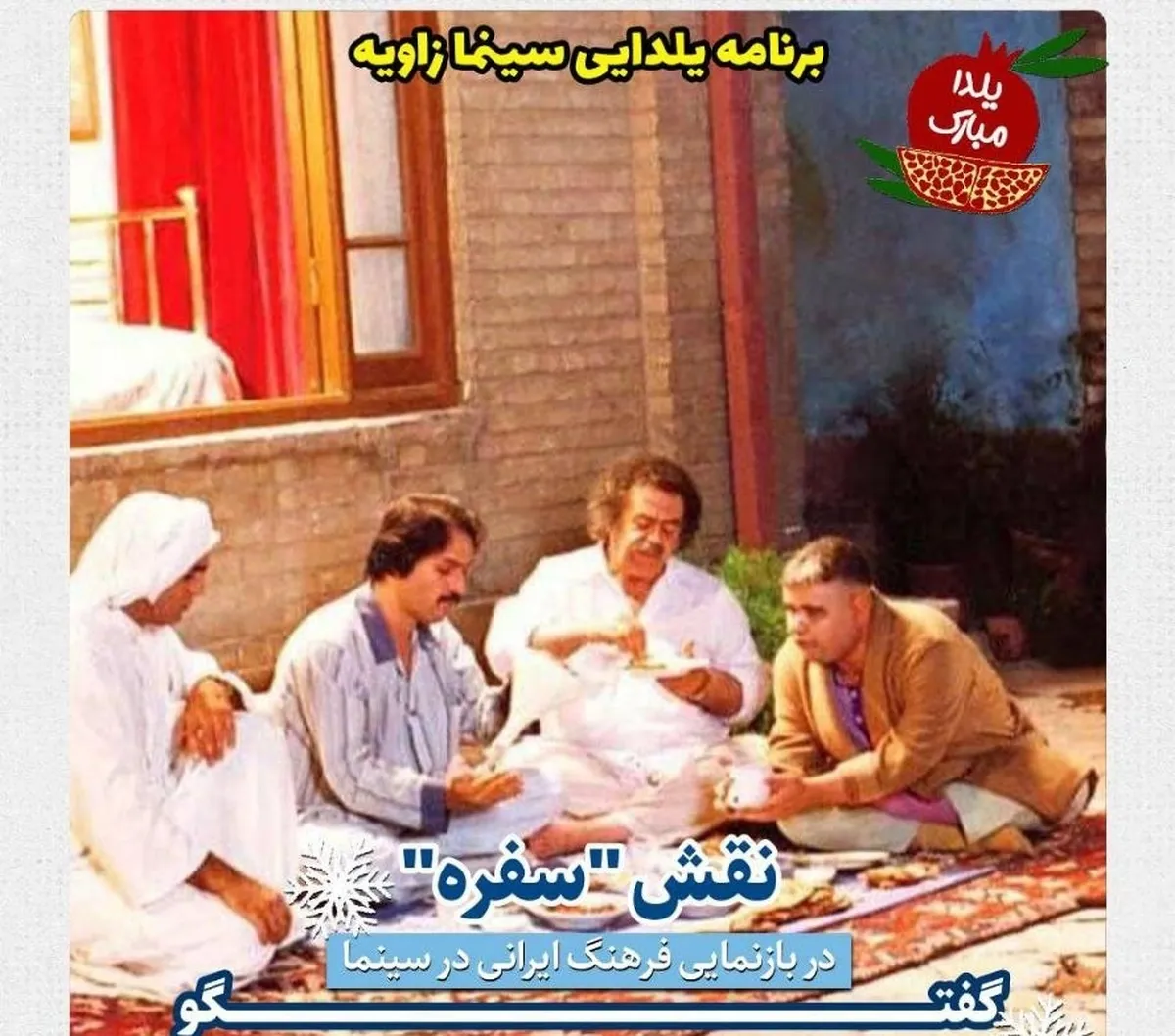 برنامه رادیویی سینما زاویه به تهیه کنندگی رقیه زهرا پروند اور و سردبیری مریم شوندی و پیمان خزلی پنجشنبه ۳۰ آذر ماه به بررسی نقش سفره در بازنمایی فرهنگ ایرانی در سینما میپردازد.