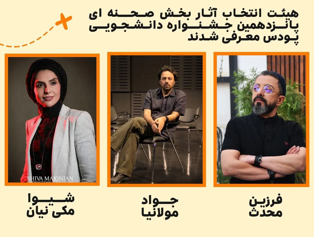 به گزارش گروه فرهنگ و جامعه خبرگزاری علم و فناوری آنا، با حکم امیرحسین شفیعی دبیر پانزدهمین جشنواره سراسری تئاتر دانشجویی پودس فرزین محدث، جواد مولانیا و شیوا مکینیان ارزیابی و انتخاب آثار بخش صحنهای این رویداد هنری را برعهده خواهند داشت.