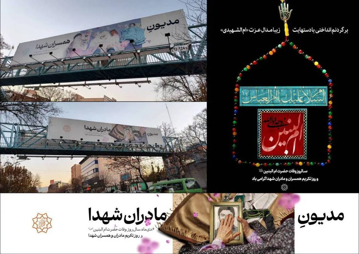 همزمان با ۱۳ جمادیالثانی روز وفات حضرت امالبنین(س) و روز تکریم مادران و همسران شهدا، طرحهای فرهنگی به همت سازمان زیباسازی شهر تهران در فضای شهری پایتخت اکران شد.