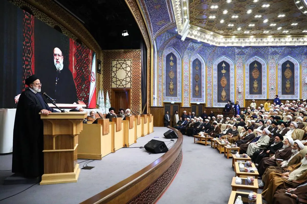 رئیسی همچنین بر ضرورت تلاش برای کم کردن فاصله وضع موجود با وضع مطلوب با برقراری عدالت در اجرا، قانونگذاری و داوری تاکید کرد و نقطه نظرات اصلاحگرایانه علما و اندیشمندان را در این مسیر راهگشا و موجب غفلتزدایی از عملکردها عنوان کرد. رئیس جمهور در پایان همچنین به موضع قاطعانه جمهوری اسلامی ایران در حمایت از مسئله فلسطین نیز اشاره کرد و گفت: آنچنان که در اجلاس ریاض نیز بیان کردم امروز حقانیت موضع جمهوری اسلامی ایران در قبال مسئله فلسطین به تایید همه ملتهای آزاده و آزادیخواه جهان رسیده، نقاب از چهره نفاق کنار زده شده و ماهیت رژیم جعلی و کودککش صهیونیستی بر همگان آشکار شده است.