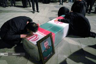 حضرت آیتالله خامنهای رهبر معظم انقلاب اسلامی صبح امروز با حضور در کنار پیکر سردار شهید سید رضی موسوی و قرائت فاتحه، بر پیکر آن شهید سرافراز نماز اقامه کردند.