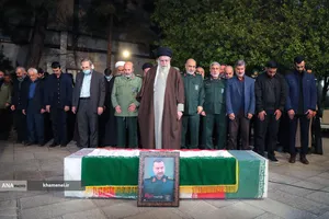 اقامه نماز بر پیکر سردار شهید سیدرضی موسوی با حضور رهبر انقلاب