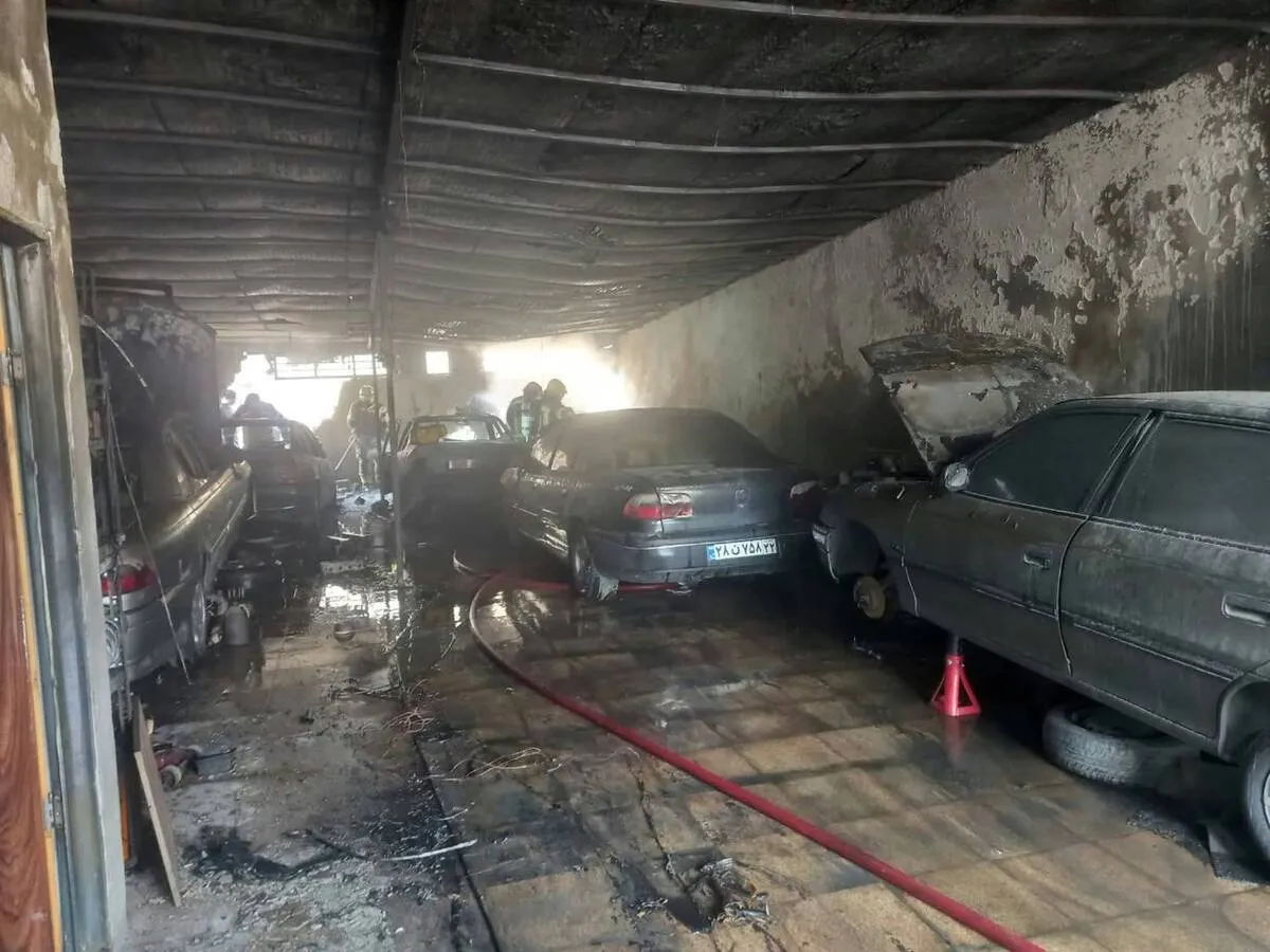 سوختن چند خودرو در آتشسوزی تعمیرگاه