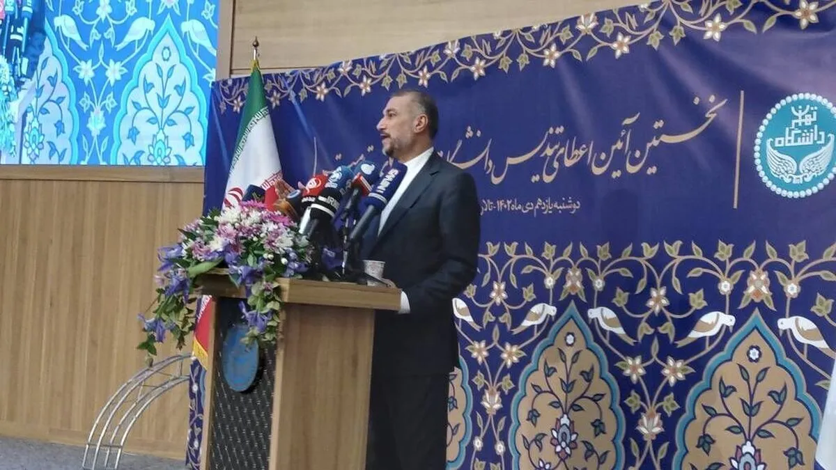 امیرعبداللهیان تصریح کرد: امروز عزیزان دانشگاه تهران نمادی از مقاومت در منطقه و در جهان به تصویر کشیدند که می‌خواهم چندجمله‌ای از غزه صحبت کنیم.