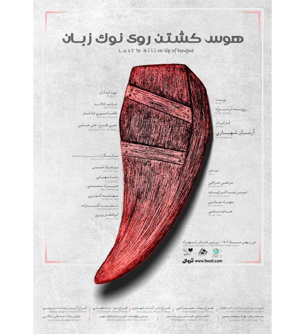 از پوستر نمایش «هَوَسِ کُشتن رویِ نوکِ زبان» به کارگردانی آرمان شهبازی و طراحی سجاد نجفی رونمایی شد.
